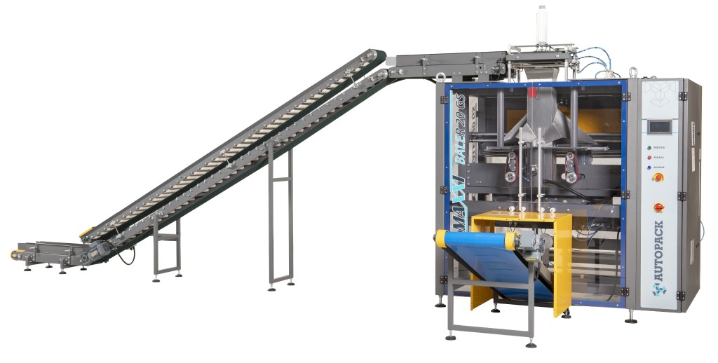 Enfardadora vertical, para pacotes tipo almofada ou fundo chato.