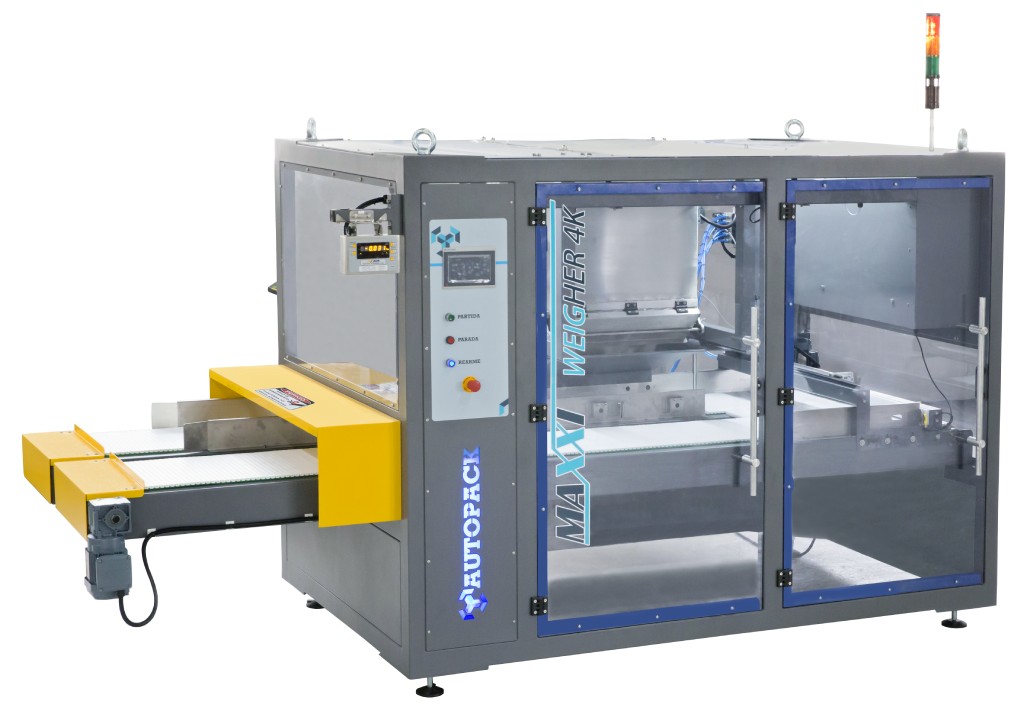 A Maxxi Weigher 4k é uma máquina pesadora que possui três etapas durante seu ciclo, na primeira etapa o operador posiciona a embalagem na esteira transportadora que posiciona a mesma abaixo da balança dosadora onde esta dosa o produto até atingir o peso programado. A balança despeja dentro da caixa e é levada pela esteira transportadora até o ponto final do processo.